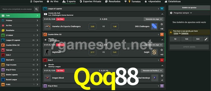 O Qoq88 oferece uma grande seleção de opções de apostas em e-sports com probabilidades competitivas